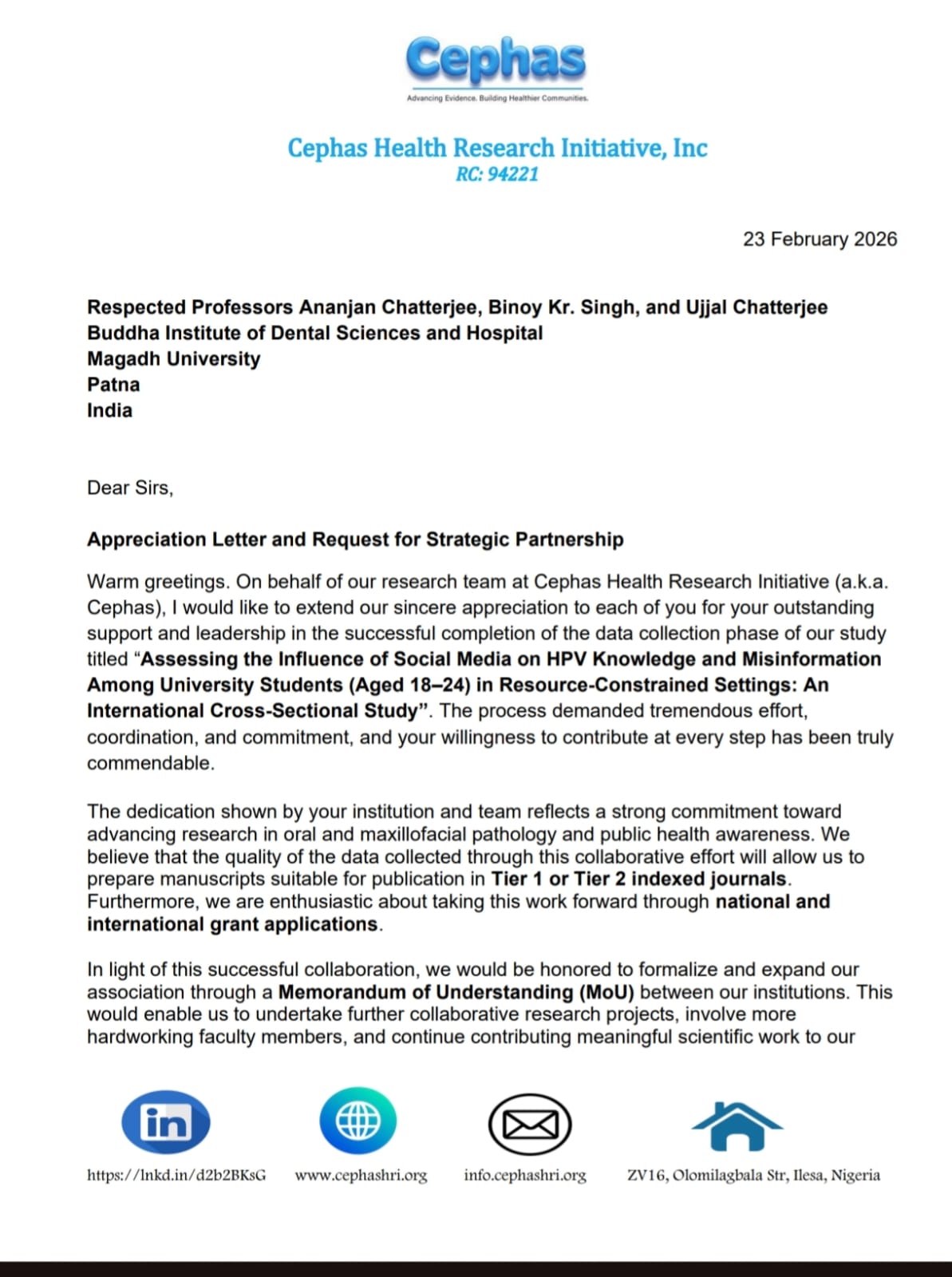 Venue-" Buddha Institute of Dental Sciences and Hospital, Patna."The department of Public Health Dentistry, BIDSH in collaboration with AIIMS Deoghar participated in an Advanced Tobbaco control project. A letter of Appreciation and two paper publications was also received for the same..